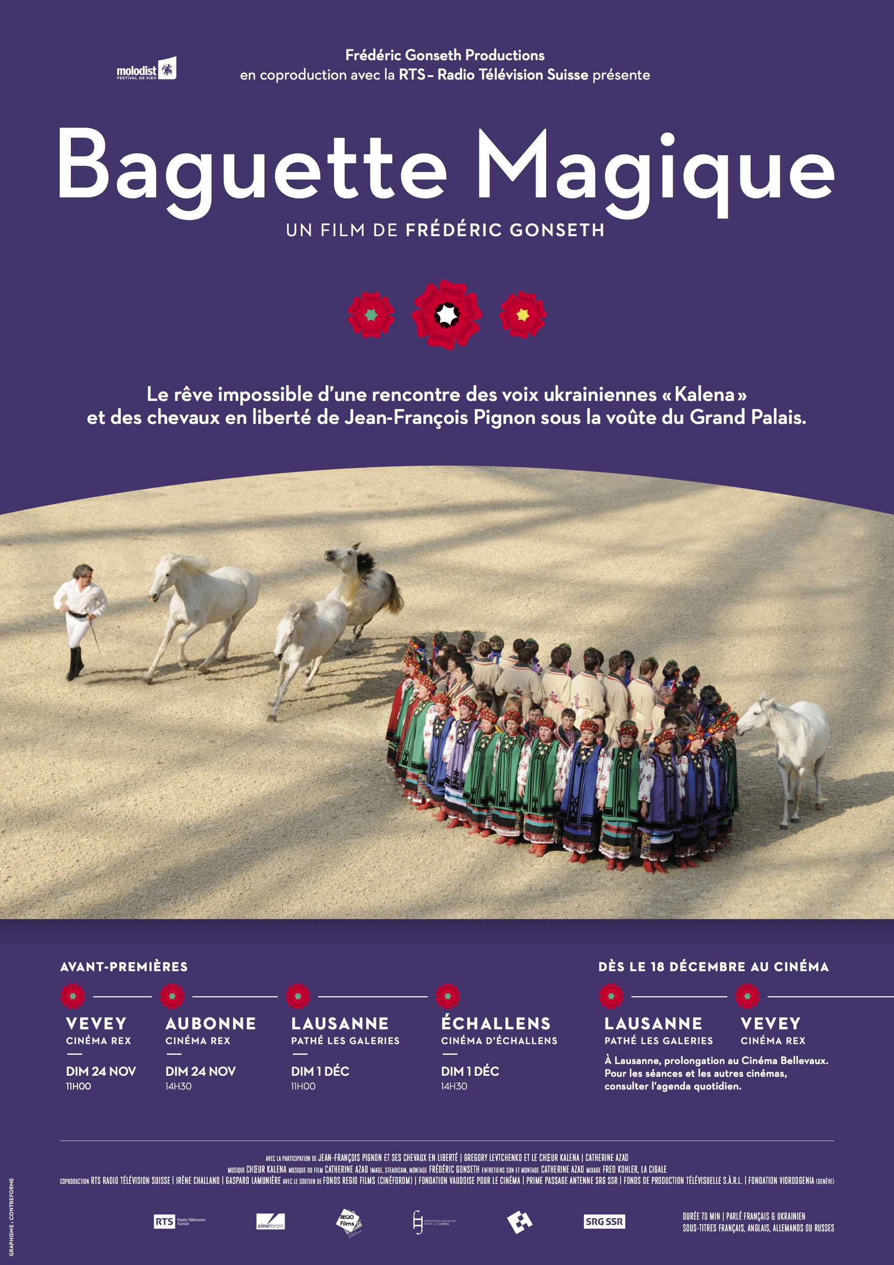 Qu'y a-t-il de commun entre le célèbre dresseur de chevaux en liberté Jean-François Pignon et le chef de chœur ukrainien Gregory Levtchenko? Rien apparemment. Sauf que... une femme, une Suissesse, rêve depuis longtemps, de les réunir en piste dans un spectacle équestre et musical... Un rêve démesuré, qui, sans l'intervention d'une baguette magique, n'aurait jamais pu se réaliser.