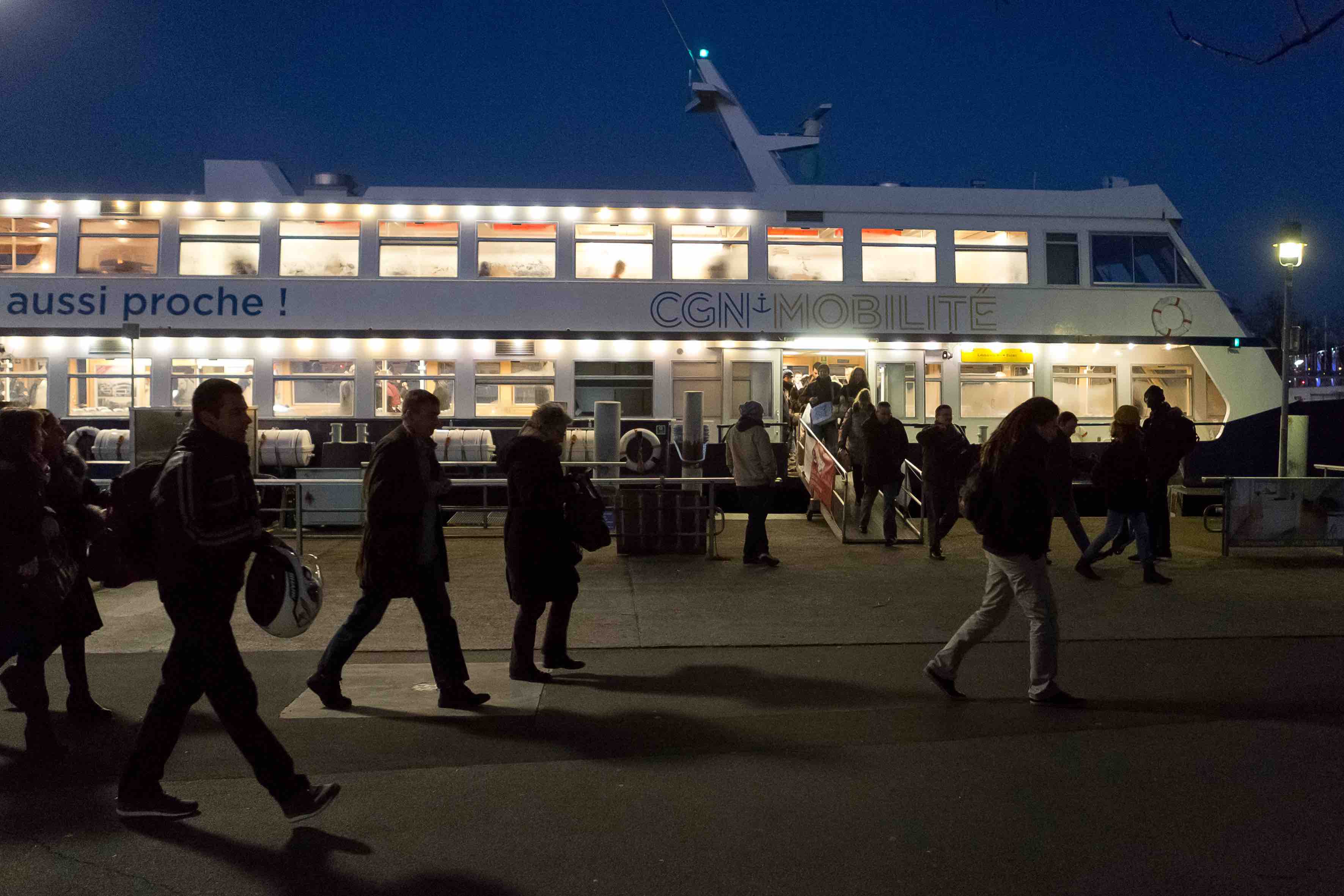 Au début des années 80, ils étaient une petite trentaine. Aujourd’hui, ils sont plus de 3’000 à traverser le lac Léman chaque jour pour travailler en Suisse. Le premier navire quitte Evian à 5h40 avec sa fournée d’ouvriers frontaliers. A 7h00, ce sont les traders, les cols blancs. A 8h20, le «Club des Blondes». Dans le sens inverse, ceux qui terminent leur travail de nuit – infirmiers, veilleurs ou boulangers – prennent le premier bateau d’Ouchy pour rentrer se coucher en France. Bienvenue à bord du «Léman», un bateau trait d’union entre deux mondes qui se font face… et se connaissent si peu.
