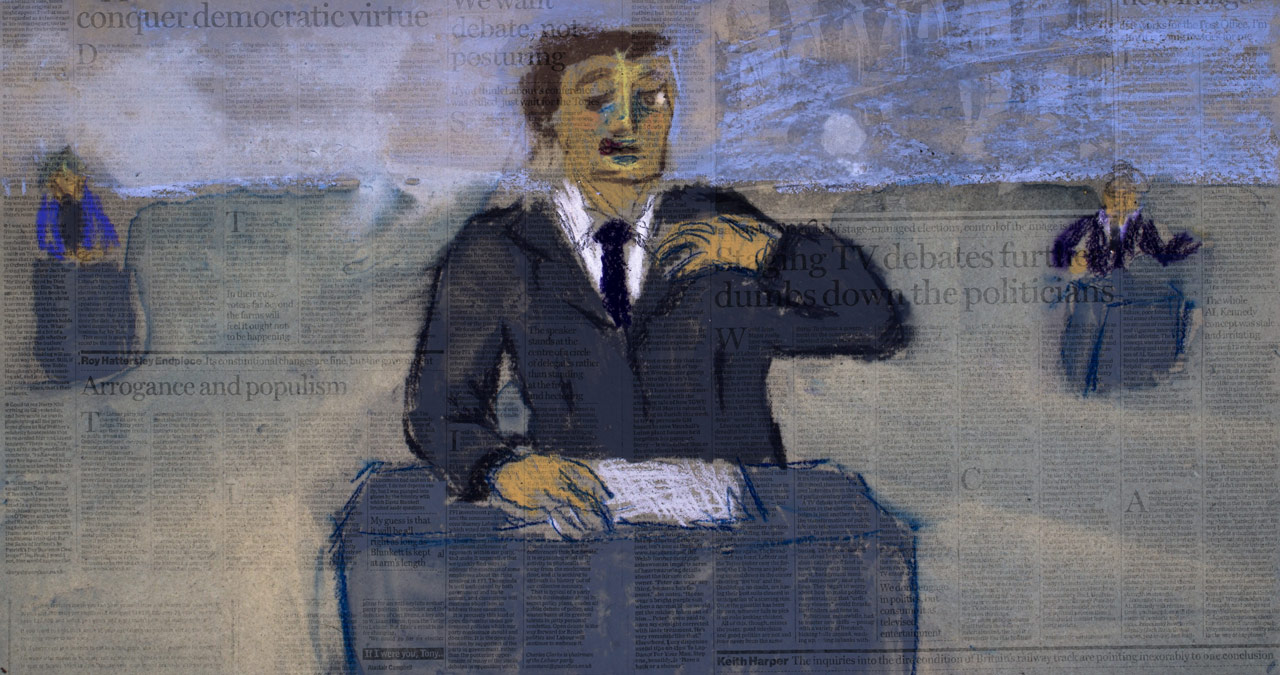 Une femme lit le journal avec une telle intensité qu'elle en est littéralement dévorée. Peinte sur ses pages, elle est témoin de certains des événements tragiques de notre époque, se noie dans les déchets de l'océan et est menacée par les éléments déchaînés par les changements climatiques. Pourtant, dans son désespoir, elle transforme ces ténèbres en mouvement et en art, et elle plante ainsi les graines de l'espoir.